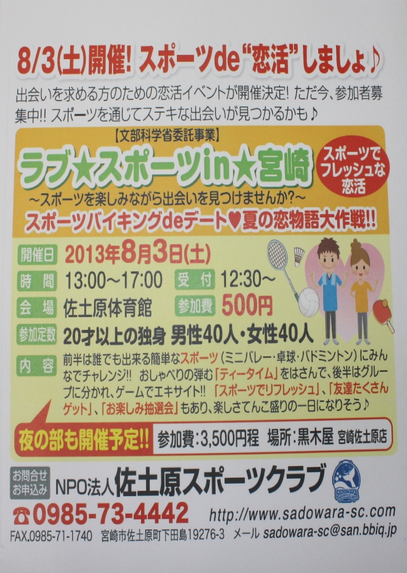「スポーツ恋活」~ラブ♡スポーツin宮崎~8月3日(土)開催します!