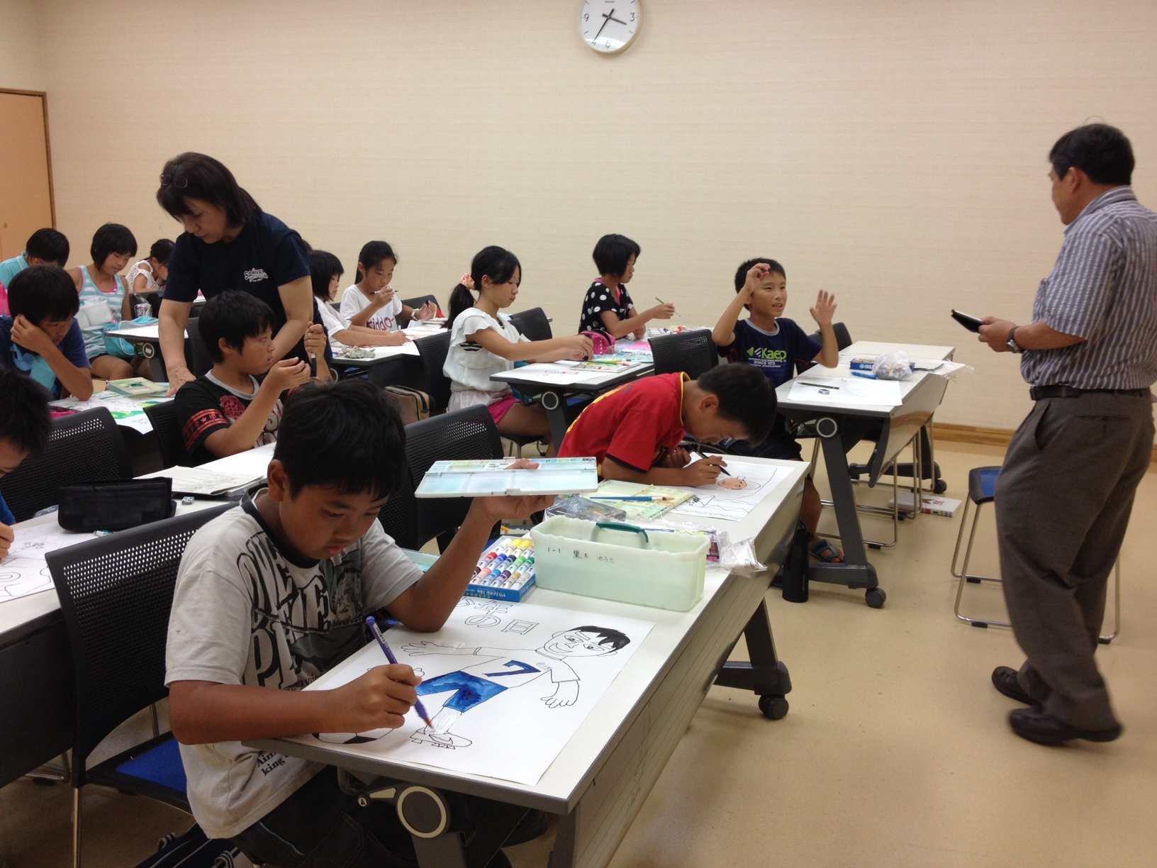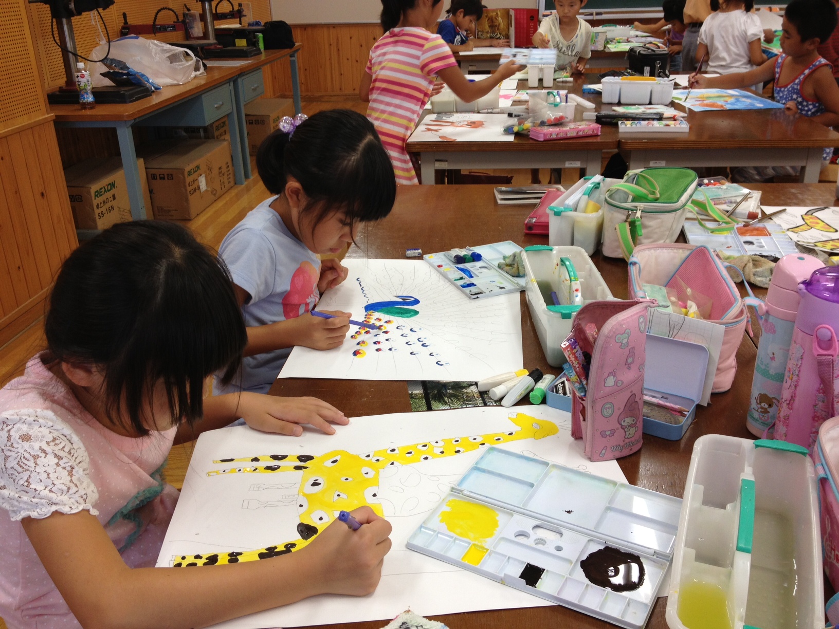 高学年の子どもの中には、下書きに時間をかけてしまったために色付けができなかった子どももいました。 今年は、絵画希望者がたいへん多く、半日のみの受講とさせていただきました。来年度は、1日かけて仕上げたい人への対応を考えたいと思います