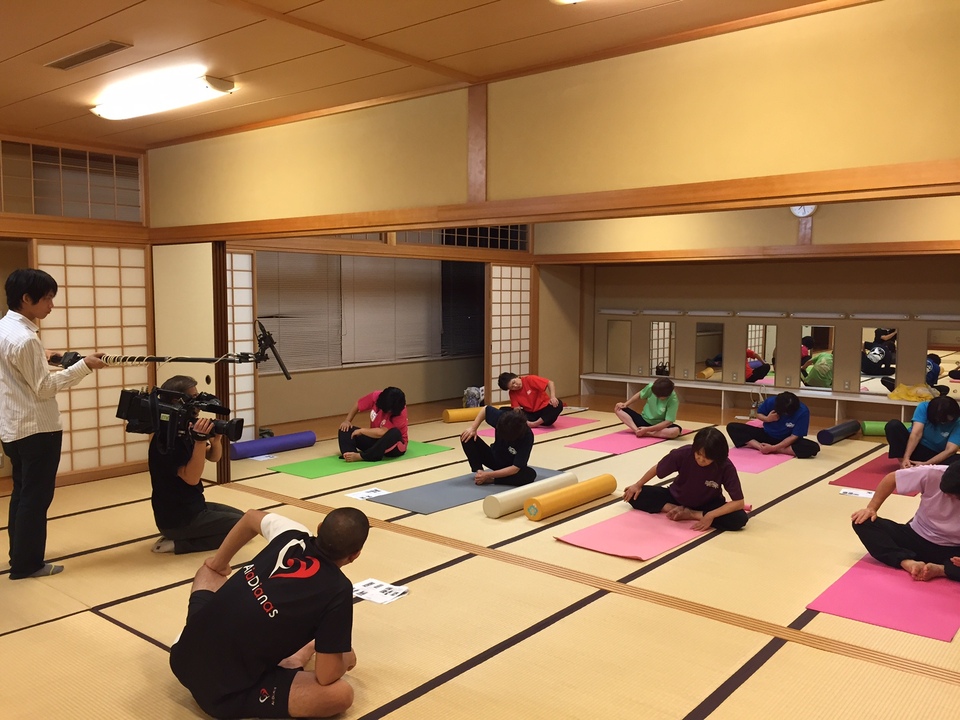 取材中、深川先生の元気なお声が部屋に響き、ストレッチポールからずっこける人がいて笑いがおこる楽しいひと時でした