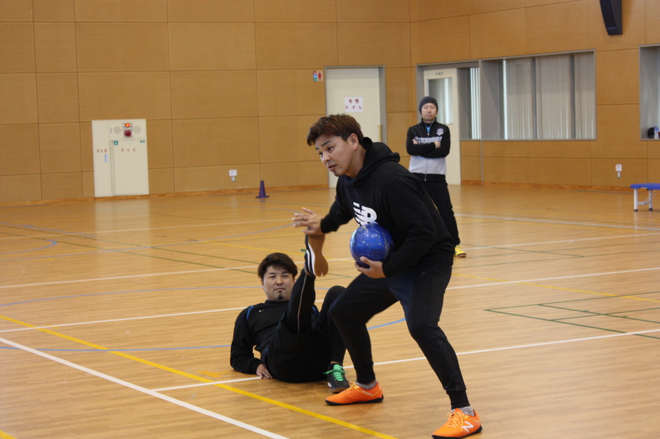 城彰二さんの弟和憲さんと当クラブフットサル教室指導者の木下健生さんが